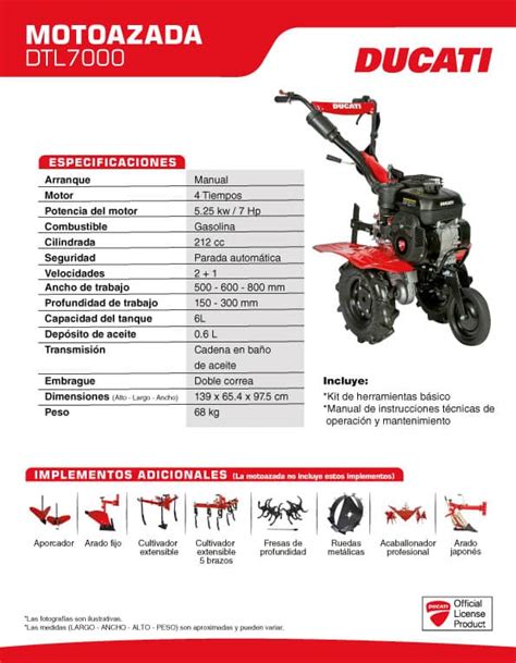 Ducati ofrece diferentes modelos de motoazadas para adaptarse a las necesidades de cada usuario. Entre los modelos más destacados se encuentran el DTL 9000 y el DTL 7000.