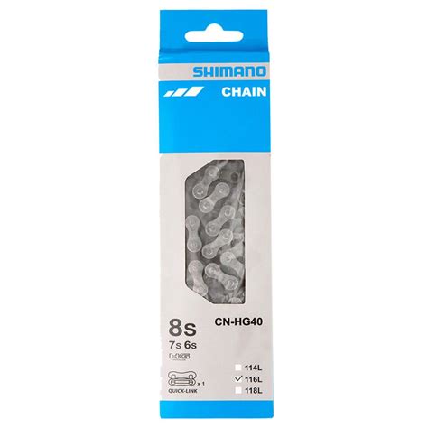 La cadena Shimano CN-HG40 es adecuada para los engranajes Shimano de 7/8 velocidades, así como para los antiguos piñones HG de 6 velocidades (18/21/24 velocidades). La cadena transmite la potencia del plato al piñón del buje trasero.