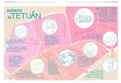 La única industria situada al Norte de Cuatro Caminos era la fábrica de papel, emplazada donde más tarde se alzaría el Mercado de Maravillas. Al Sur, en la Mala de Francia, se encontraba una fábrica de velas y otra de gorras. En la calle de Santa Engracia, la fábrica de chocolates 'La España', que proporcionaba trabajo a muchas trabajadoras, y las grandes serrerías de Adrián Piera. En el foso del Ensanche, eel Taller de Precisión y Parque de Artillería, y los talleres de automóviles Dion-Bouton. Como puede observarse, una gran parte de los trabajadores de Tetuán trabajaba fuera del barrio y en éste son pocas las industrias existentes.