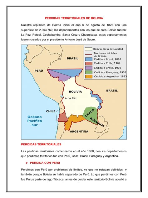 El litoral boliviano abarcaba alrededor de 158 000 km² e incluía como principales poblaciones a Antofagasta, Mejillones, Cobija y Tocopilla. Con Brasil, se tuvo inicialmente una solución diplomática con el tratado de 1867. En los casos de Argentina y Perú, se alcanzaron soluciones por medios diplomáticos. Con Argentina se firmaron tratados en 1898 y 1925, mientras que con Perú se alcanzó un tratado definitivo de límites en 1909.