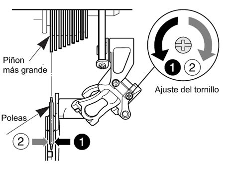 - El tornillo de ataque, en un Shimano Desviador Trasero, es el que está en medio.
