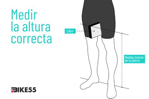 El ajuste del sillín no se hace al azar: requiere tomar medidas de tu cuerpo y aplicarlas a la bicicleta. El primer paso consiste en conocer tu medida de entrepierna, ya que es la referencia principal para calcular la altura correcta. Coloca un libro entre las piernas, presionando hacia arriba simulando la presión del sillín, y mide desde el suelo hasta la parte superior del libro.