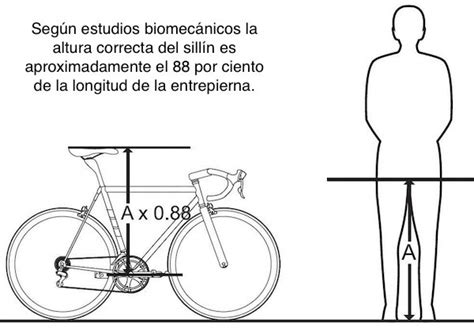 Para regular la altura del sillín, en muchas ocasiones, se mide esta distancia partiendo de la posición sentado en el sillín y con las puntillas en suelo. En esta posición, deberíamos tener la pierna estirada del todo para, cuando nos dispongamos a pedalear con la zona más anterior del pie, tener la pierna semiflexionada. Se recomienda una angulación entre 145º y 150º.