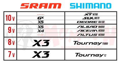 Equivalencias en Transmisiones MTB (7v - 12v)