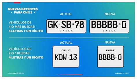 Cada patente en Chile se diferencia por su color y el tipo de vehículo al que están asignada. Además, existen otros tipos de placas patente especiales, como las placas patente de colección, que se asignan a vehículos antiguos o históricos. También están las placas patente de discapacitados, que se asignan a vehículos adaptados para personas con discapacidad.