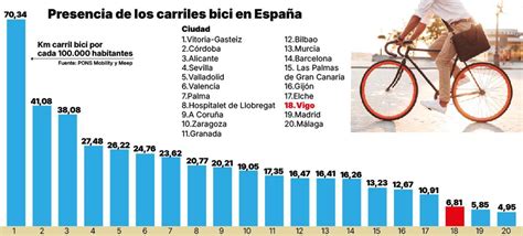 En España, según datos de un estudio que realizó el periódico El País, las ciudades con una red más amplia y segura son Vitoria, Valencia, Zaragoza, San Sebastián y Sevilla. Otras como Madrid, Málaga, Bilbao o Las Palmas cuentan con muchos menos kilómetros e infraestructura para desplazarse de forma segura.