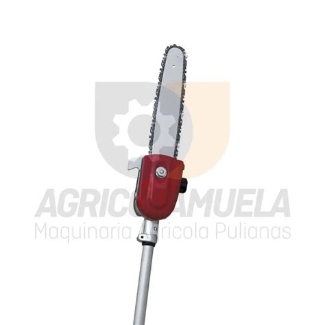 El accesorio podadora permite cortar ramas y arbustos hasta 3 metros de altura. Depósito semi-trasparente para comprobar rápidamente el nivel de aceite lubricante sin quitar el tapón. La podadora monta barra y cadena originales Oregon.