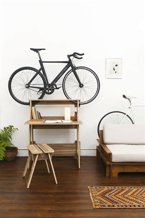 DE5K soluciona tu espacio e inspira tus ideas. Es un mobiliario de fácil y entretenido armado, pensado para incorporar tu bicicleta de manera firme a tu espacio de trabajo o vida cotidiana. Se encuentra disponible en pino contrachapado, con acabado natural y colores a elección.
