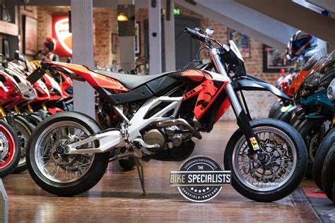 La Aprilia SXV 450 era la versión supermotard, 100% asfáltica. Se comercializó en versión supermotard, la SXV 450/550. Las SXV eran unas bestias, poderosas, ligeras y muy rápidas, pero tuvieron un severo Talón de Aquiles: el motor era muy delicado y propenso a roturas de cigüeñal y tren alternativo.
