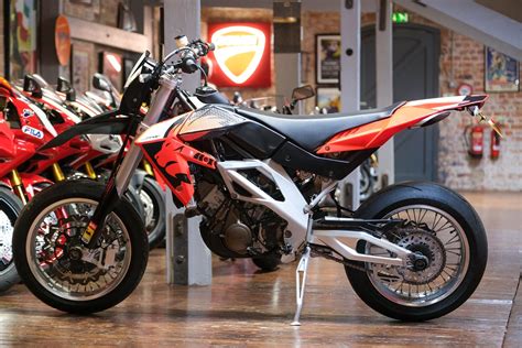 Aprilia sorprendió a todos con esta Aprilia SXV 450, porque era la primera supermotard bicilíndrica tan ligera como una monocilíndrica -pesaba 117 kg-, pero mucho más potente, cerca de 60 CV. Las primeras unidades que se lanzaron fueron exclusivamente para competición, logrando el título de pilotos en el campeonato del Mundo de Supermotard en la categoría S2 en 2004, con el francés Jerome Giraudo, saltándose “las normas” ya que el resto de las motos eran monocilíndricas.
