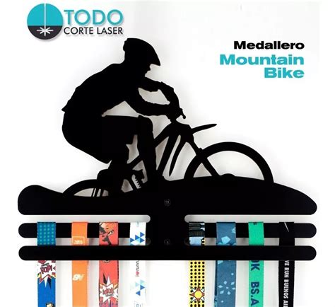 - Silueta de Bicicleta: Un medallero con la silueta de una bicicleta de montaña cortada en madera.