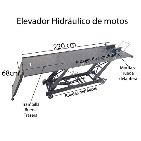 - Elevadores hidráulicos: Utilizan un sistema hidráulico para levantar la moto, ofreciendo un levantamiento suave y seguro.