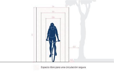 Las dimensiones de una persona adulta en una bicicleta común, en posición estática, son 60 cm de ancho y 1,90 m de altura, correspondiente a la persona de pie en los pedales. Como los ciclos de dos ruedas son vehículos dinámicamente estables, se suma el movimiento lateral necesario para mantener el equilibrio. Este corresponde a 20 cm por cada lado.