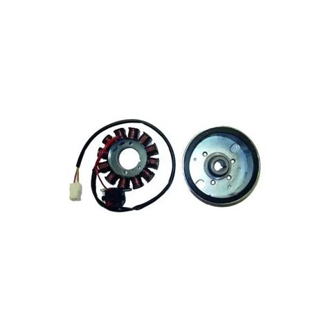El volante magnético (también llamado plato magnético o rotor) es la pieza que, acoplada al cigüeñal, convierte la energía mecánica del motor en corriente alterna para el encendido y los sistemas eléctricos de la moto (iluminación, carga de batería, etc.). Su diseño con imanes permanentes y su equilibrado son claves para un arranque fiable y un funcionamiento sin vibraciones.