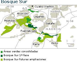 El proyecto Bosque Sur promete unir los municipios de Leganés, Pinto, Alcorcón, Móstoles, Getafe y Fuenlabrada a través de un corredor verde de más de 900 hectáreas arboladas. Una de las consecuencias más atractivas de este proyecto es la posibilidad de conectar el Parque Regional del Sureste con el Parque del Curso Medio del río Guadarrama, siguiendo el cauce del Arroyo Culebro. Esto abrirá un amplio abanico de rutas para los amantes del senderismo y el mountain bike.