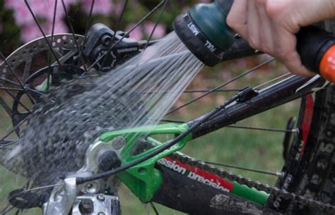 - Aclarar o enjuagar con agua toda la bicicleta. Eliminar cualquier resto de jabón en discos de freno, zapatas y pistas de frenado de llantas.