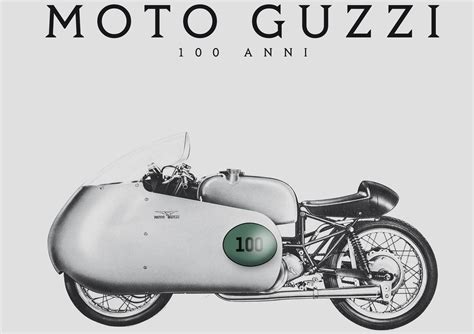 Han sido 10 décadas repletas de éxitos y victorias en competición gracias a algunas motos míticas. Moto Guzzi ha logrado triunfos en todos los circuitos del mundo, conquistando 14 títulos del Campeonato del Mundo. Fue la motocicleta de los récords de velocidad, el símbolo del crecimiento de toda una nación, la motocicleta de la policía y el ejército de Italia -y también de fuerzas policiales en muchas ciudades europeas- así como la motocicleta de los Corazzieri, la guardia de élite de honor del presidente de la República Italiana.