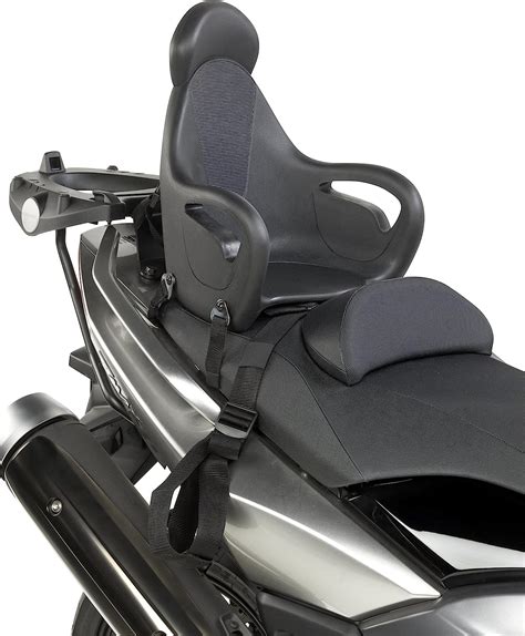 El asiento GIVI S650 está diseñado para sujetar muy bien al niño tanto lateralmente como por la espalda gracias al respaldo envolvente que impide que pueda desplazarse para atrás o resbalar a ambos lados. No incluye cinturón para mayor seguridad en caso de caída.