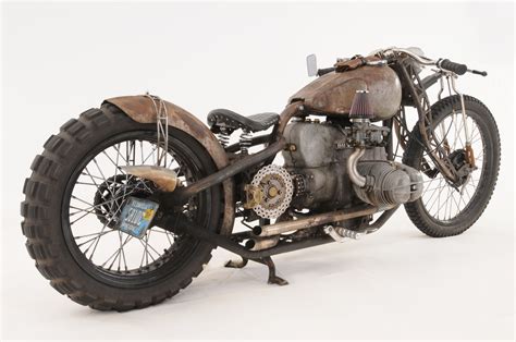 Es difícil determinar cuándo aparece esta vertiente del custom, ya que consiste en la modificación o creación de motos a partir de piezas de desguace viejas, accesorios oxidados de otras máquinas ajenas al motociclismo (a veces surrealistas), y en definitiva hacer que la motocicleta funcione correctamente pero con un aspecto decadente, sucio y viejo. Se utiliza pintura negro mate o verde militar y evidentemente, se prescinde totalmente de cromados.