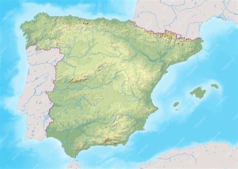Mapa topográfico de España mostrando las principales cadenas montañosas.