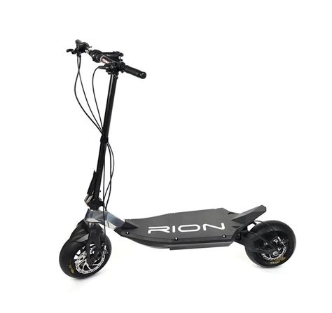 El Rion RE90 es el patinete que se utiliza en las mejores competiciones. Puede alcanzar los 160 km/h, aunque se vende limitado a 128 km/h. Además de ser el patinete más rápido del mundo, también es uno de los más livianos de su categoría, gracias a que sus componentes estructurales están fabricados en aluminio y fibra de carbono.
