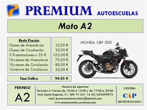 En cuanto al precio del carnet A2, será muy parecido al que dimos de referencia con el A1, aunque debido a su mayor complicación, es normal que el precio final salga por más de 500 euros. El precio del carnet de moto A2 suele rondar entre 550€ y 650€ aproximadamente con unas 10 clases prácticas de media y tasas incluidas en muchas autoescuelas. Si suspendes, normalmente tendrás que volver a pagar tasas de examen o gestión según condiciones.