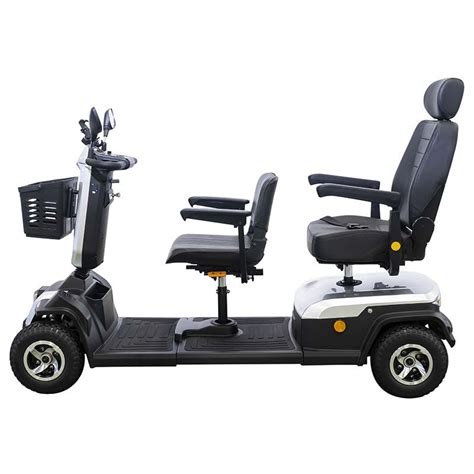 Scooter para discapacitados con diseño robusto y capacidad para dos personas o bariátrico, cuenta con cuatro ruedas macizas de agarre con suspensión independiente, puede manejarse sobre cualquier superficie aportan estabilidad y seguridad en los desplazamientos.