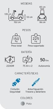 El scooter para dos personas Dakar Dúo es el scooter eléctrico ideal para personas con sobrepeso que no se adaptan a los asientos standard. Soporta pesos hasta 225 Kg.