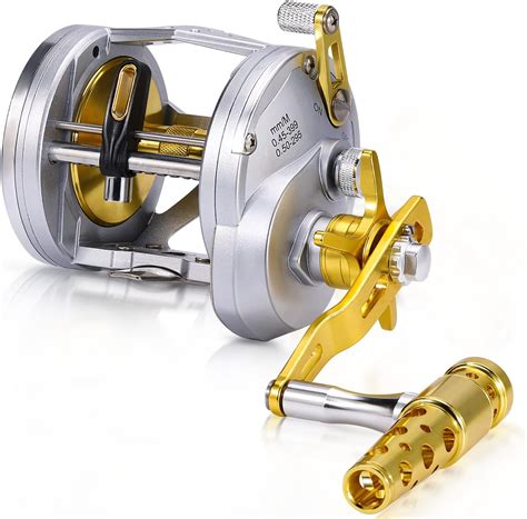 Construido sobre un robusto eje de aluminio, con 4 rodamientos A-RB (antioxidantes), engranajes extra grandes de acero inoxidable, una manivela de aluminio con empuñadura de goma sobredimensionada, y una enorme potencia de arrastre, es una pieza seria. Los modelos de 2 velocidades tienen engranajes continuos para una transición sin problemas y todos los modelos tienen un clicker ultra ruidoso, además de un freno de palanca de carraca que hace un clic tranquilizador cuando se ajusta.