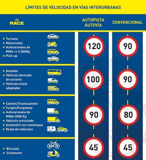 A continuación, se presenta una tabla con las velocidades máximas y mínimas permitidas para diferentes tipos de vehículos en España: